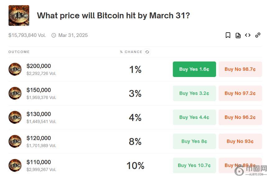 其他预测显示,比特币可能在3月底达到15万美元、13万美元或12万美元,而11万美元被认为是更现实的目标。