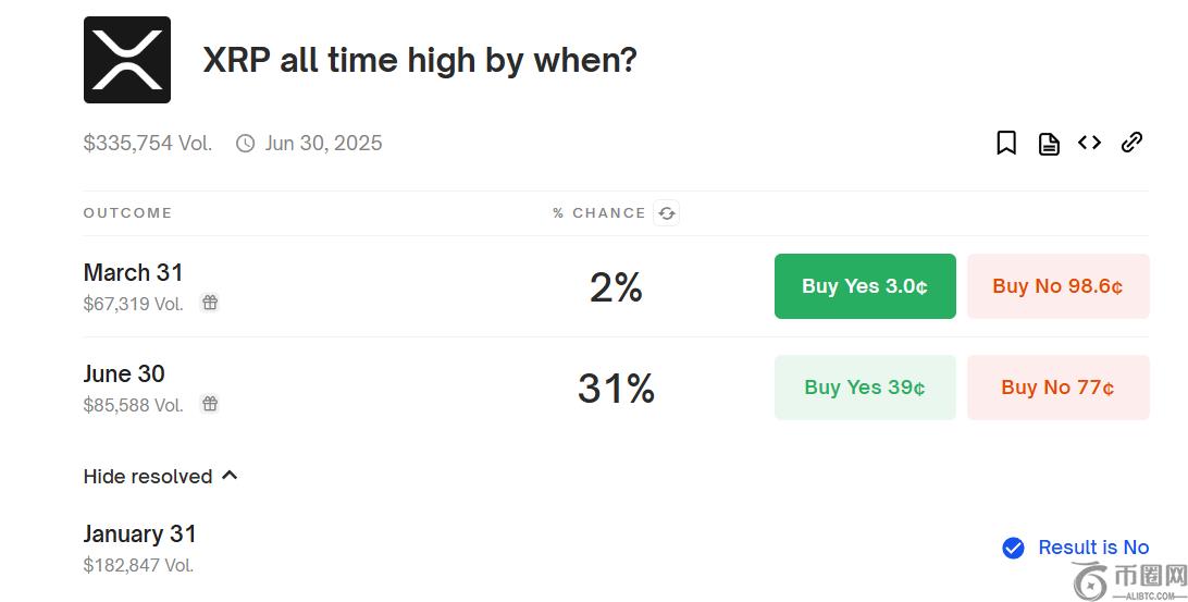 Ripple的本地令牌在2025年的第二个月中的7年高度为3.04美元,Polymarket预测这将发生。分散的市场**平台只预见了XRP $ 2.80,比实际时钟的**低12%。