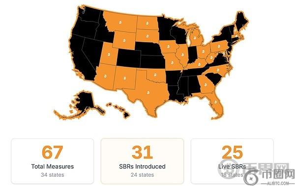 Julian Fahrer 建立的「Bitcoin Laws」网站显示,目前全美有 24 个州提出了战略比特币储备法案,总法案数为 31 个。其中,蒙大拿州、南达科他州、北达科他州、宾夕法尼亚州及怀俄明州的比特币储备法案已被否决或搁置。当前进展最快的州是犹他州,相关法案已提交至参议院。其次是亚利桑那州,相关法案通过参议院第三次宣读,投票结果为 17 票赞成,12 票反对,现将提交至众议院审议。其他进展相对靠前的州还包括俄克拉荷马州以及得克萨斯州。(注:法案可在众议院或参议院提出,若在参议院提出,则在参议院批准后提交至众议院,反之亦然。如两院均通过,法案将提交州长签署成为法律或被否决。 一旦州长签署,法案即成为法律)