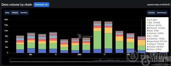 其中,最为引人注目的无疑是 PancakeSwap。据 2 月 13 日数据显示,PancakeSwap 过去 24 小时和过去 7 天内交易量**的 DEX,其在过去 7 天内的交易量为 200 亿美元,在过去 24 小时内的交易量为 30 亿美元。种种数据表明用户正逐步将关注点从 Solana、Ethereum、Base 等生态转移到 BNB Chain,BNB Chain 正成为新的关注焦点。