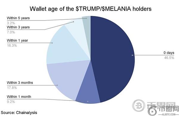 TRUMP/MELANIA 持币地址创建时长饼状图