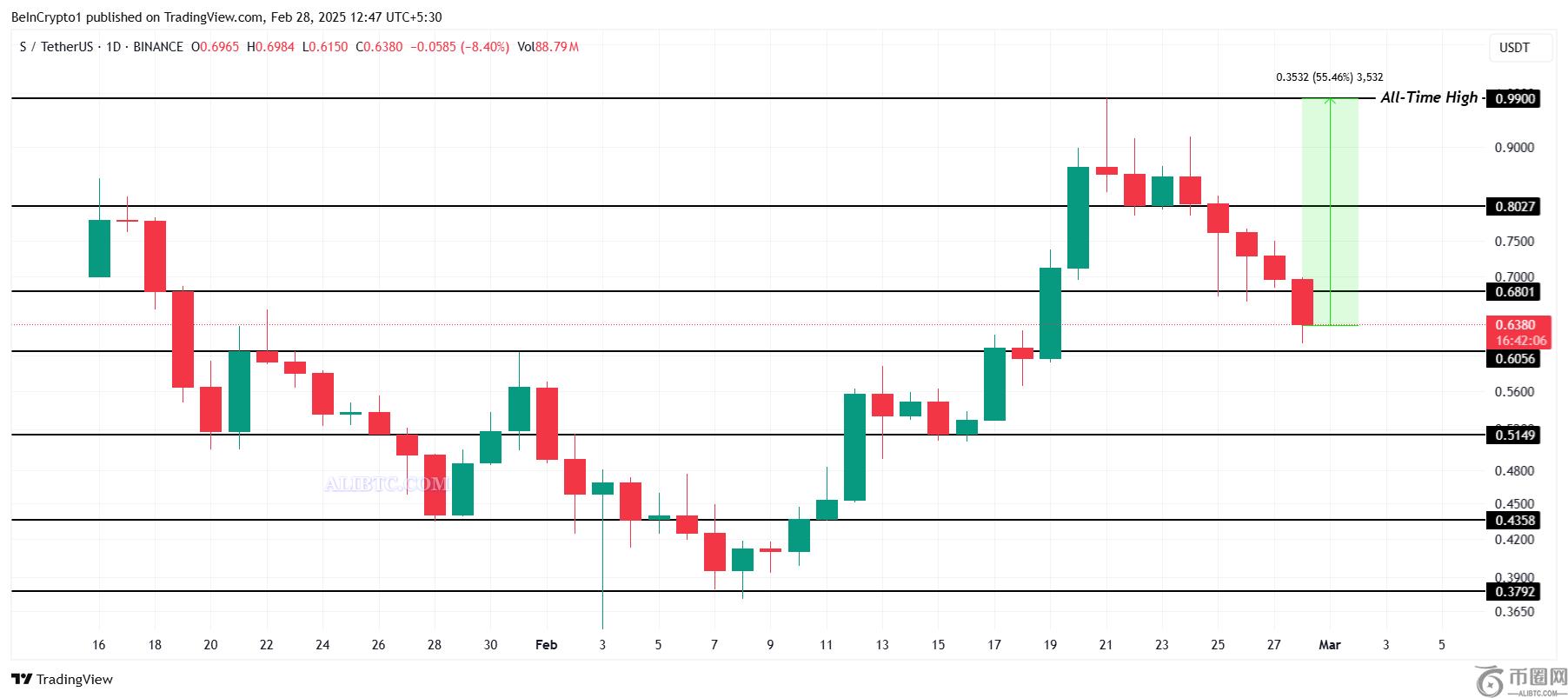 然而,如果市场继续下跌,投资者决定抛售,Sonic 可能会跌破 0.60 美元的支撑位。如果发生这种情况,山寨币可能会进一步跌至 0.51 美元,使看涨前景失效并延续近期跌势。持续的抛售压力可能会****潜在的复苏。