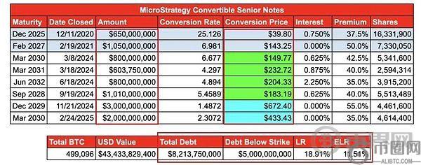 MicroStrategy目前的总债务约为82亿美元,主要是可转换债券,票息较低,部分甚至为0%。