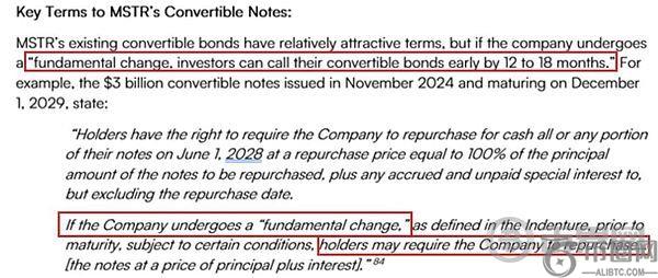 如下图,如下图所示,可转债条款中规定公司发生重大变化,投资者可以要求公司提前12-18个月偿还债务,但是定义“重大变化”主要是指公司股东决定清算,公司股东的投票权大多数在MichaelSaylor手里