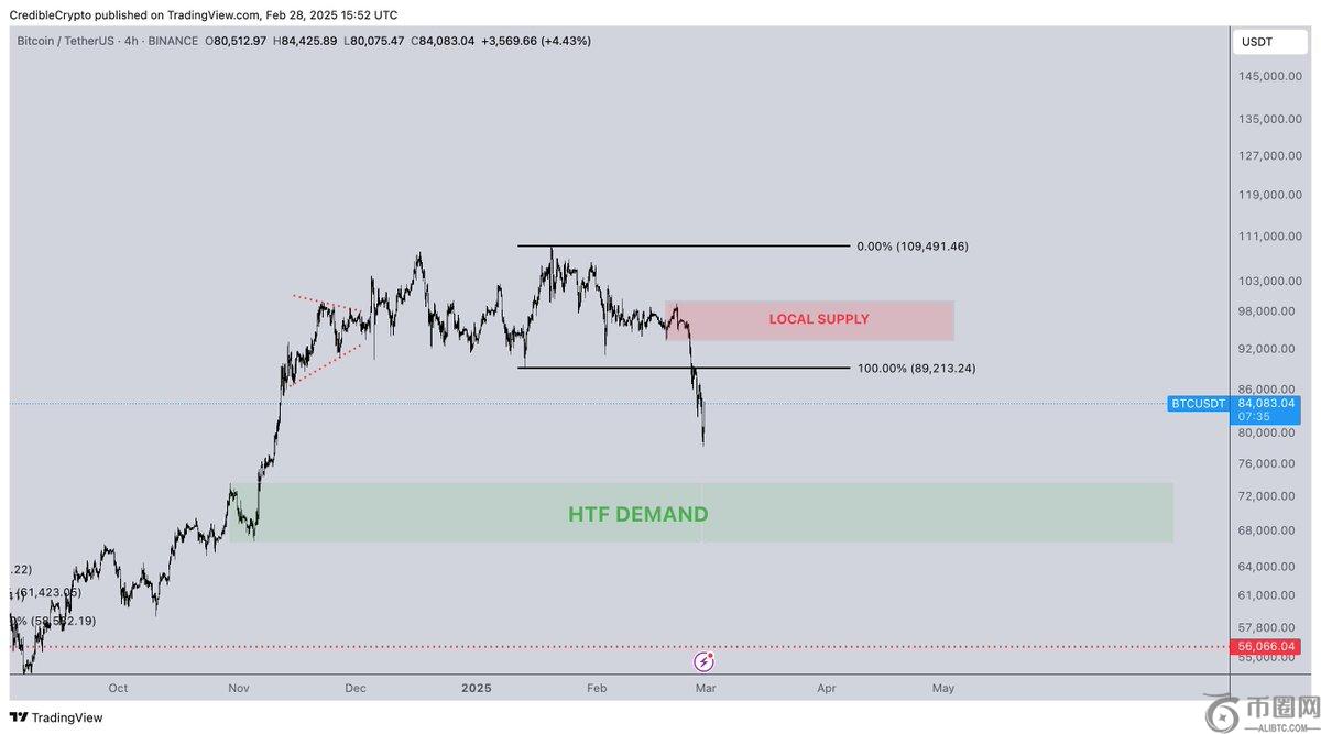 “ BTC的标签为79,000美元,我们现在看到了一些缓解。目前,从我的角度来看,只有两个级别:94,000美元至99,000美元的本地供应,高时限需求不到74,000美元。我怀疑我们在**逆转之前的未来几天之间在这两个层面之间形成了基础。”