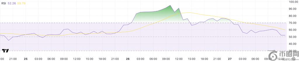 同样,RSI的位置约为52.2,从极高的95降落。这次下降表明购买压力正在降温,目前可能正在发生合并阶段。