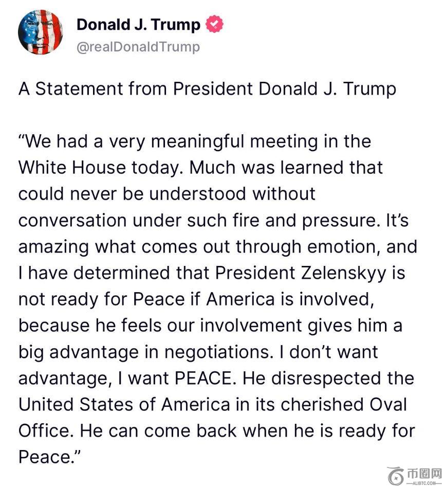 唐纳德·特朗普在与泽连斯基激烈会谈后发表声明。