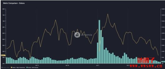 区块链数据分析公司Artemis 的报告显示,Solana 网路的交易活动明显减弱,这与SOL 价格下跌形成恶性循环。