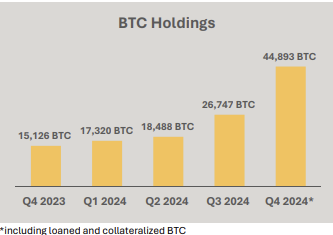 公司进行了比特币的分散化储存,包括将部分比特币借出和用作抵押。这样可以优化资本使用效率,提高资金流动性。据其2024年报告,约有10,374个比特币借给第三方或用作抵押。