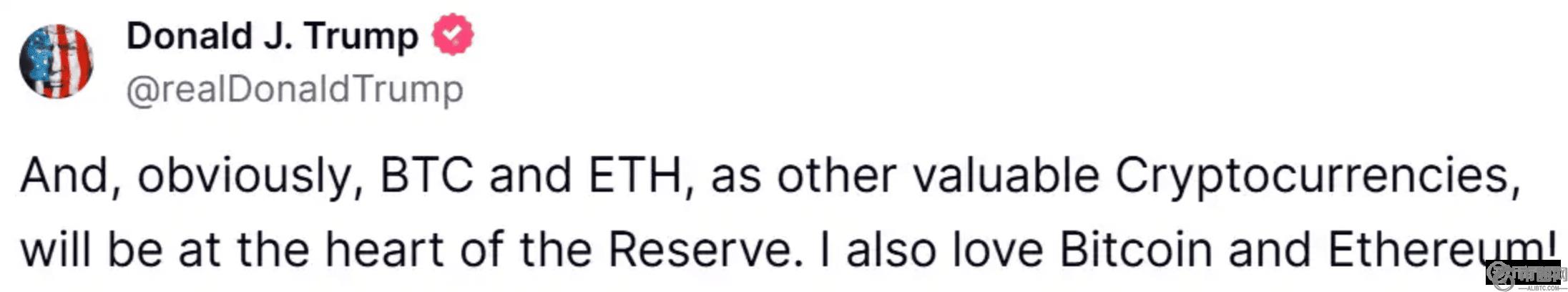昨天深夜,美国总统特朗普在社交媒体发文表示,将推进BTC、ETH、XRP、SOL、ADA等成为拟议的加密战略储备体系的关键组成部分。
