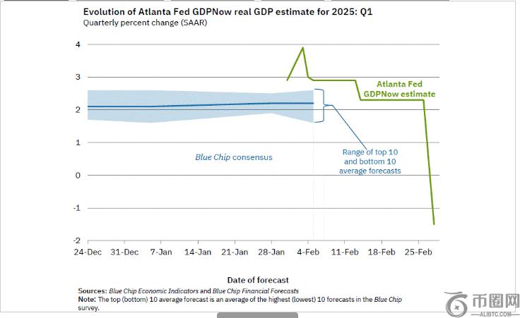 引用亨里克·泽伯格(Henrik Zeberg)的亚特兰大美联储的数据告诉他在社交媒体平台x上的175,200名关注者预计在2025年**季度将收缩1.5%。