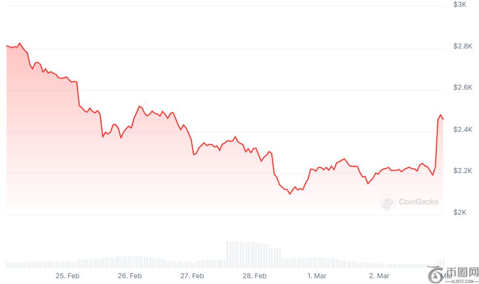 ETH超过了其同行,增加了12%以上,至2,400美元以上,而XRP飙升了近35%。