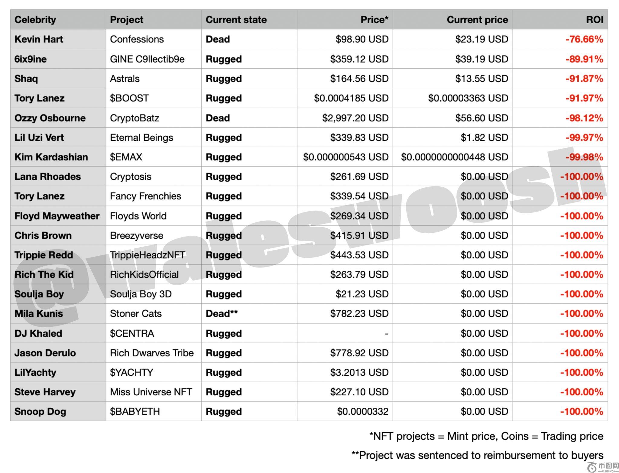 关于他的帖子的评论者共享图像清单失败了名人的**和NFT,包括金·卡戴珊(Kim Kardashian)和弗洛伊德·梅威瑟(Floyd Mayweather)推广的项目,其中大多数的幅度大约为90%。鉴于这一历史,许多投资者对STAR10的长期生存能力保持谨慎。