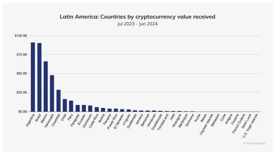同时,该法案发起人还认为,哥伦比亚的加密采用率很高,因此必须制定法律来规范该行业。每链分析数据,在2023年6月至2024年6月之间收到的加密货币价值中,哥伦比亚在拉丁美洲**中排名第五。