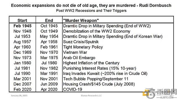 让我们用最近的经济史来检验这一规律。感谢Bianco Research提供的这份出色的表格。