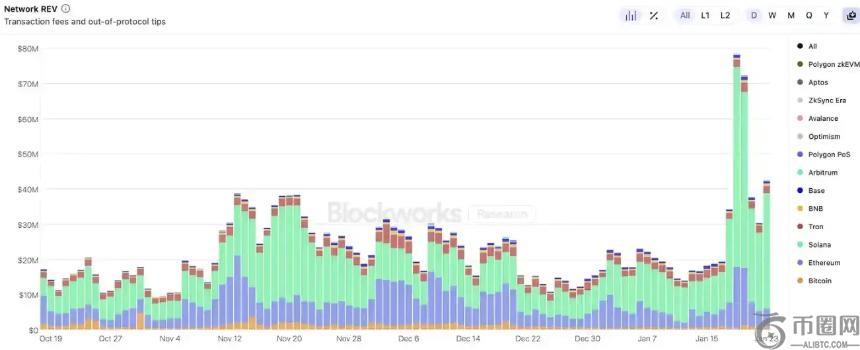 反观向右走的 Solana,以超高速的交易效率和吞吐量来实现 Mass Adoption 的愿景在技术上逐渐成为现实,在一种区块链中形成了压倒性的优势,从交易量、活跃度到流动性,Solana 都成为当之无愧的龙头。而特朗普币的上线可谓是 Solana 性能**的抗压测试。5.6 亿美元的真实价值在一天内产出,而其中一半的价值由从未参与过区块链的外部人士产生。Polygon 联创 Brendan Farmer 却对 Solana 的结构性问题表达了担忧,Solana 大部分的经济价值产出源自于 pumpfun 和交易机器人「也就是 Meme coin 的衍生产业」,这未创造**经济价值,其后果是它们会从生态系统中抽取流动性。每一美元支付的 REV 意味着未来 Meme 币交易的资金减少而形成恶性循环。