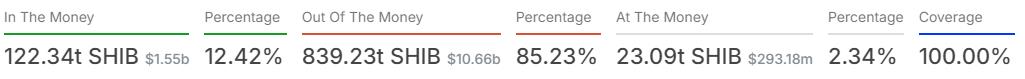 此外,Shib目前比以前的历史高点$ 0.00008845下跌了85.65%。目前以$ 0.00001270的价格出售,目前,所有区块链地址的85.23%目前处于损失。这些地址合并为839.23万亿个铲子令牌,目前价值106.6亿美元。