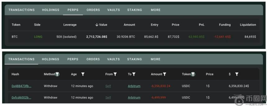 3月2日,在Hyperliquid上50倍杠杆做多BTC和ETH的巨鲸,以600万USDC起始资金,在24小时内实现了683万美元的利润。