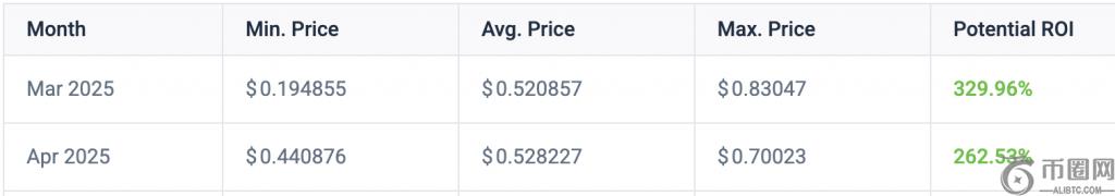 预计2025年将是OG Meme加密货币的看涨年份。根据Concodex的数据,三月和四月的月份被定为对Dogecoin最有利的。在本月,资产可能会飙升至0.83047 $ 0.83047。这标志着模因硬币的投资回报率为330%。四月的下一个月也被认为对Doge投资者有好处,因为Meme硬币将上涨至0.70023美元。