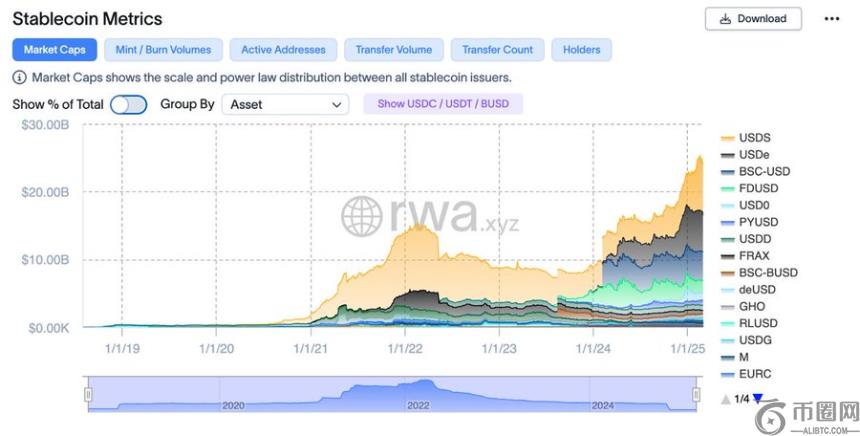 那些想要安全稳妥的人,选择法币支持的稳定币。USDT 和 USDC 保持着 90% 的市场主导地位,几乎无可撼动,这要归功于它们在不同交易所和支付平台上的广泛采用。