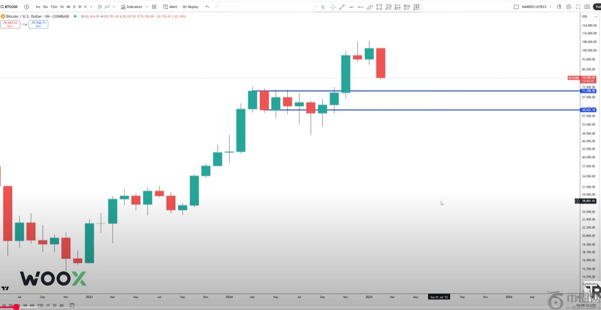 But other than that, there’s much interesting stuff here. Right now at $80,000, I’m looking at this from the lens of we’re in the middle of nowhere on the monthly [time frame]. It’s still bullish technically but no support is necessarily there.