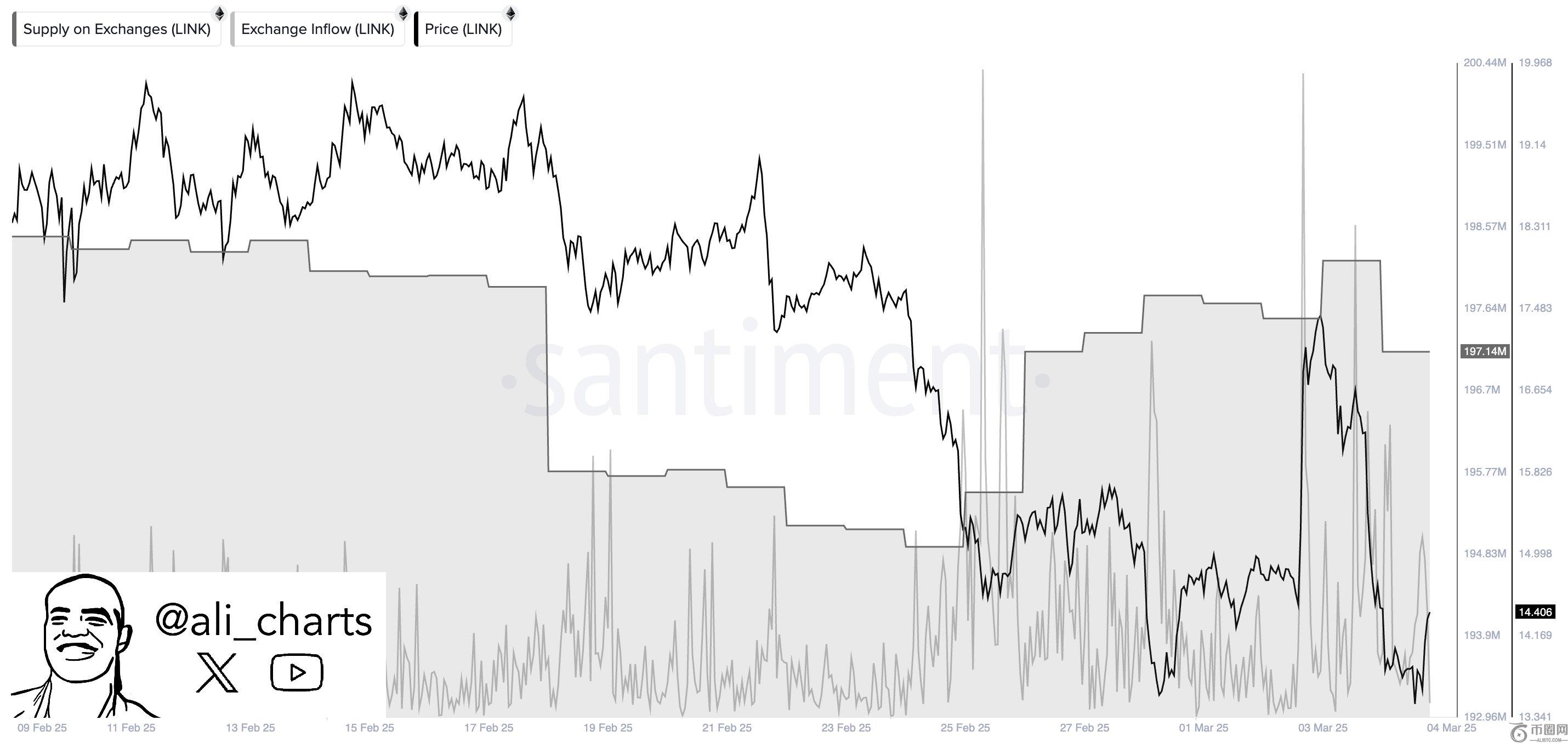 The increased supply on exchanges has now reached 197.14 million LINK tokens, potentially leading to a steep correction in the market price.