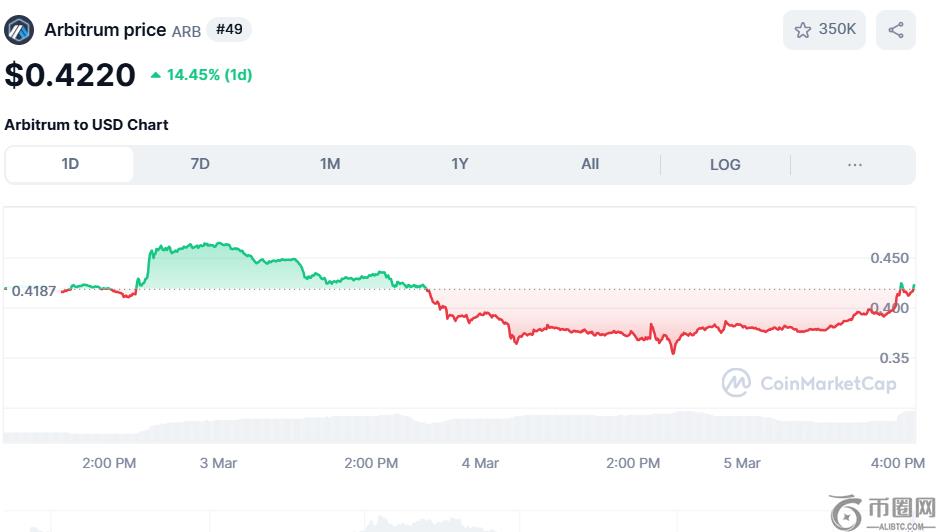 在宣布ARB上市之后,令牌[激增] d的价格大大增加了。具体而言,硬币已上涨了15%以上,交易价格为0.4220美元,高于较早的盘中低点0.3519美元。