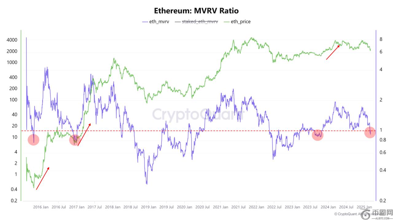 此外,加密分析师MACD建议尽管当前的价格挣扎,但ETH仍处于有利位置。据他介绍,MVRV比率已降至1以下,这表明了被低估的区域。在以前的公牛周期中,此级别的价格为巨大的价格[s。
