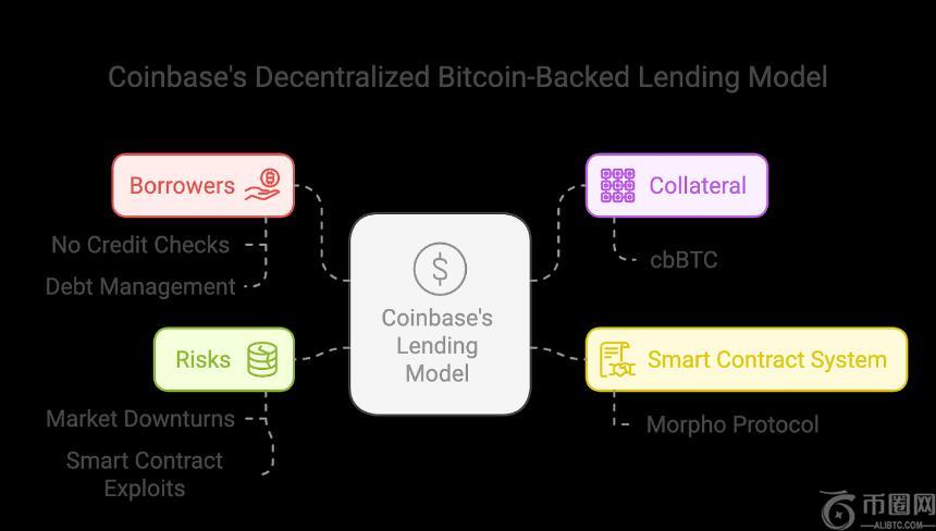Coinbase 通过与 Base 区块链上的 Morpho 协议集成,推出了一种去**化的比特币抵押**服务。用户可以将比特币作为抵押品,借取** 10 万美元的 USDC 稳定币。这种模式无需进行信用检查,也没有固定的还款计划,而是通过强制执行的**与价值比率 (LTV ratio) 来确定借款额度,确保抵押品始终能够覆盖未偿还的债务。