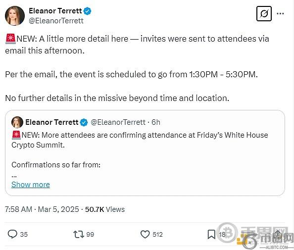 据FOX Business记者Eleanor Terrett披露,根据白宫首届加密货币峰会邀请邮件,会议将从3月7日下午1:30持续至下午5:30(北京时间3月8日周六凌晨2:30至6:30),邮件中除时间和地点外未披露其他详细信息。