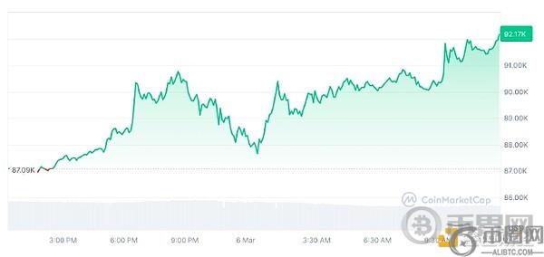 价格飙升对一些交易员来说标志着一个关键区间,他们认为这是进一步上行确认的必要条件。MN Trading 创始人 Michaël van de Poppe 在 3 月 5 日的 X 帖子中表示,“关键阻力位”是 91,500 美元。
