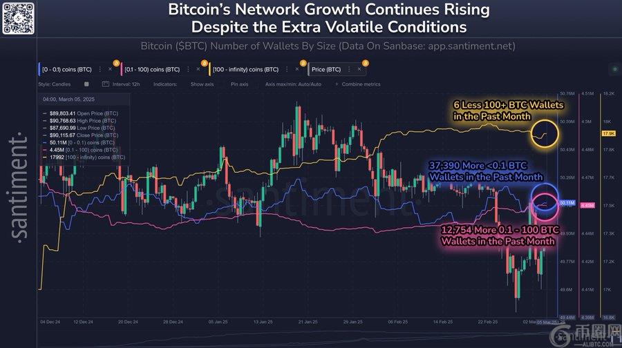 3月5日,星期三,**的加密分析提供商Santiment feed披露那是比特币在过去的一个月中,网络增加了50,000个钱包。