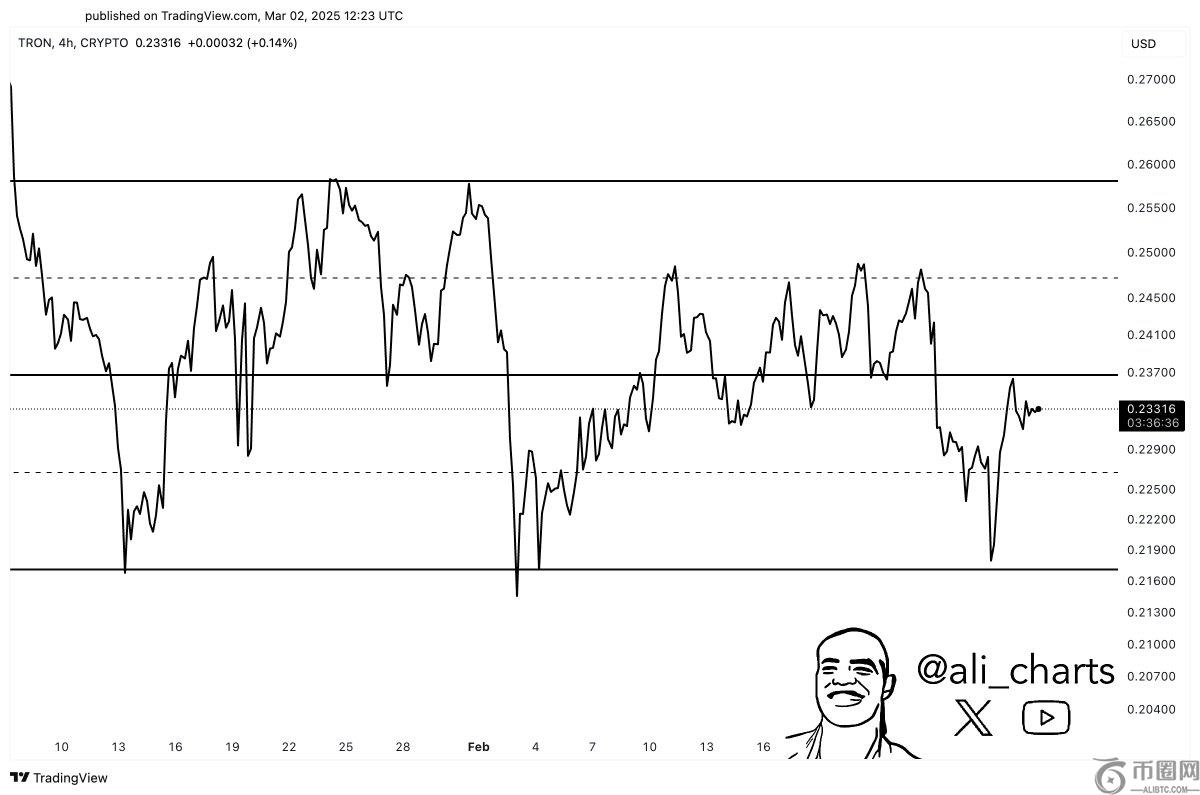 自2月中旬以来,Tron一直保持侧向转移,经受了加密市场的巨**动。这表明Altcoin的稳定性,这增加了随着市场稳定的看涨机会。