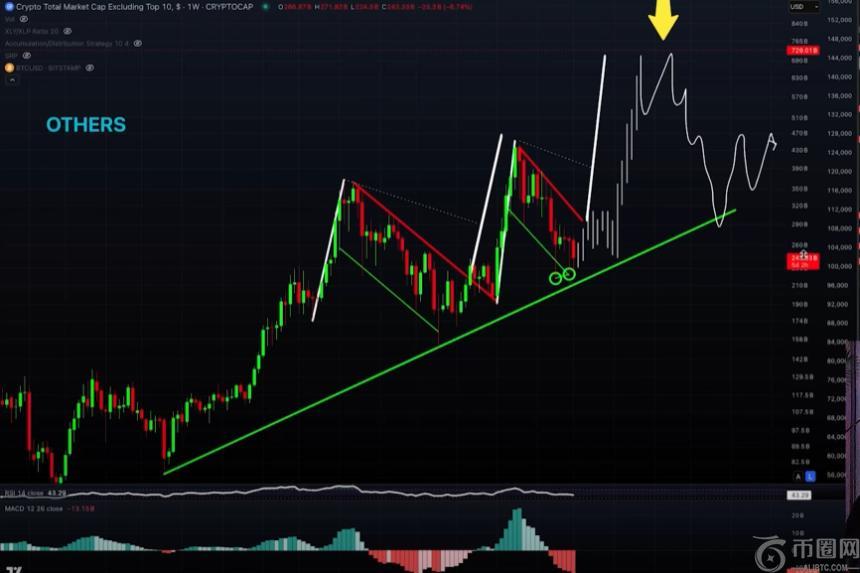 这可能是Altcoins的目标区域,之后它们可能会重新测试趋势线。未来可能会呈现一个非常稳定的上升趋势,并在每个新高点都伴随着可观的利润。”