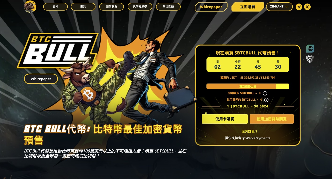 Bitcoin BULL($BTCBULL)运行逻辑与比特币市场紧密相连,当比特币达到关键价格里程碑(如 100,000 美元、150,000 美元、200,000 美元)时,持有 BTCBULL 投资者将自动获得比特币奖励。这种机制**了参与比特币投资技术和资金门坎,使投资者能够在不购买整枚比特币情况下,同样享受到价格上涨带来潜在收益。项目开售数日已售出350万美元,预售价目前是$0.002405,并在下一阶段上涨。