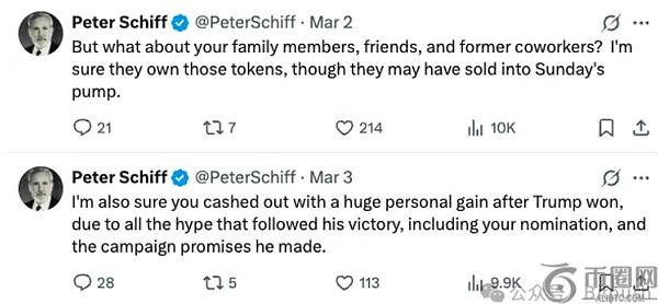 特朗普政府内部在加密领域的潜在利益冲突问题最近被推上了风口浪尖。Sacks称在任职顾问之前,已经清掉了所有的加密货币,但知名经济学家Peter Schiff公开质问Sacks: