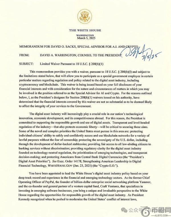 根据白宫法律顾问David Warrington撰写的备忘录,Sacks个人及其风**司Craft Ventures在上任前清仓了加密货币及相关资产。