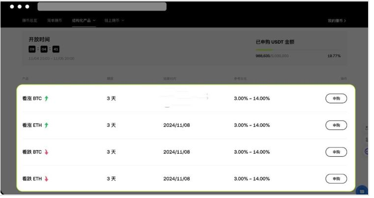 11、打开之后,选择认购选择申购期内您喜欢的产品(看涨/看跌BTC/ETH)