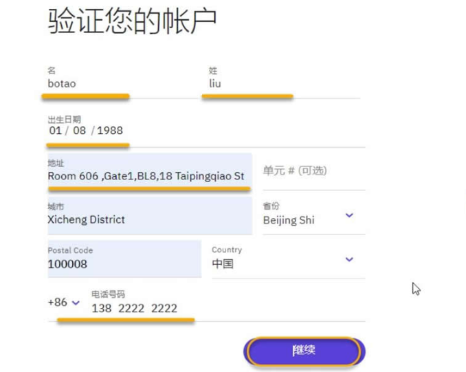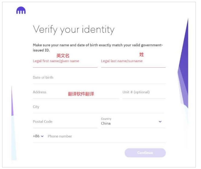 4、初级认证:填写名字,生日,地址,和手机号。即可认证。这里的地址后面中级认证提供地址证明要一致。中级认证需要身份证明和居住证明。