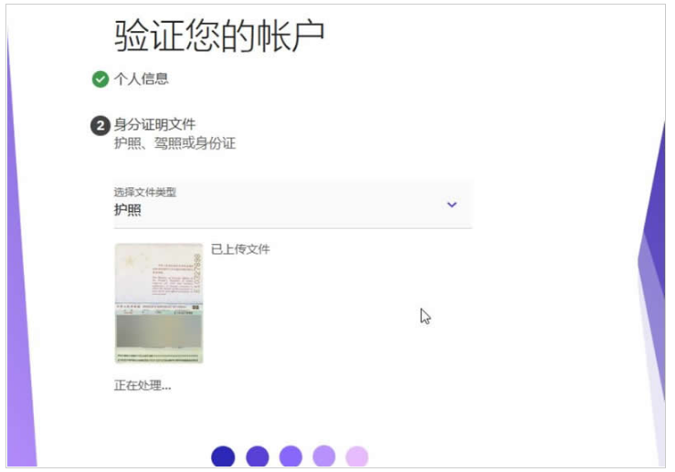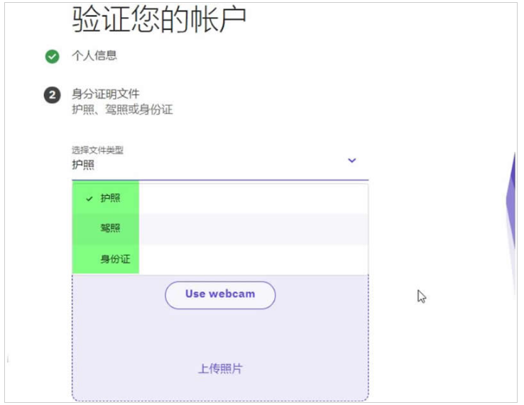 7、选择身证证明文件有护照,身份证和驾照都可以,并上传照片