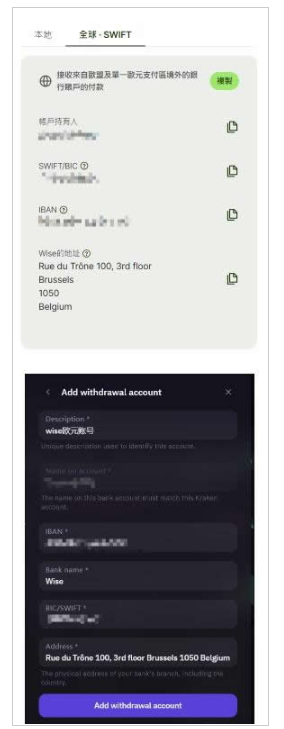 Kraken目前不直接支持将资金从平台提取到**大陆的银行账户。这是因为Kraken支持的法币提现渠道主要包括美元、欧元、英镑等,提现方式通常是通过wise、SEPA、SWIFT、FedWire等**银行转账系统,而**大陆的银行并不支持这些系统中的直接接入。通常看来说Kraken出金到大陆的卡是通过kraken—wise—香港银行卡步骤玩,但也有人直接kraken—香港汇丰银行卡完成操作,主要是因为香港有些银行对它比较友好,能够直接接入kraken的资金。具体还是取决于投资者的喜好。下文就是kraken—wise—香港银行卡的具体教程讲解: