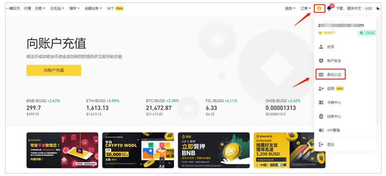 5、点击右上角的【用户**】——【身份认证】