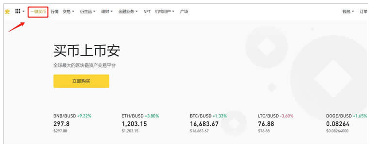 6、完成认证后,在首页点击【一键买币】