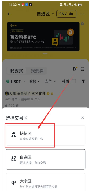 注意,快捷交易是根据您的交易金额和支付方式等选择,实际匹配的成交价和参考报价可能存在价差。