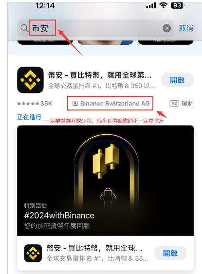 前往 App Store 搜索 "Binance" 并下载。