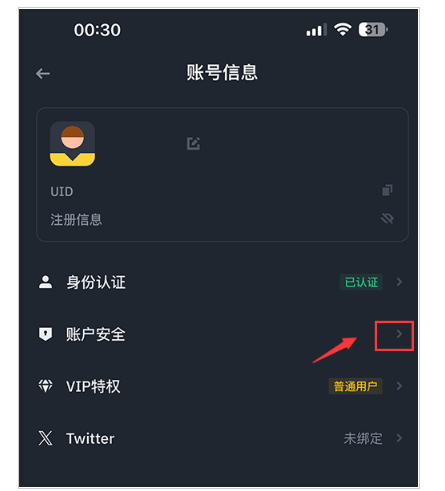 点击 账户安全 进入