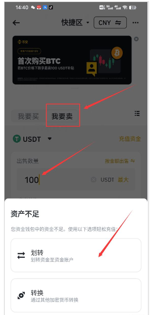 反过来,要卖出加密货币换回法币,就是点击下图的我要卖,然后选择要出售的币种和数量,点击出售即可。如果你资金账户里余额不足,会提示你从其他账户里划转过来交易。
