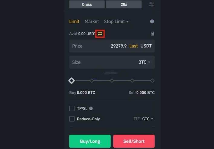 3、向合约账充值,首先需要确保个人币安账户中有可划转的资金。将资金转入个人合约钱包,请点击币安合约页面右侧的“转账”图标。