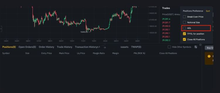 8、在【交易活动面板】可以实时监测合约交易活动。还可在此处监测位于自动减仓(ADL)项下自动减仓队列中的仓位。在剧烈波动期间应尤为关注。