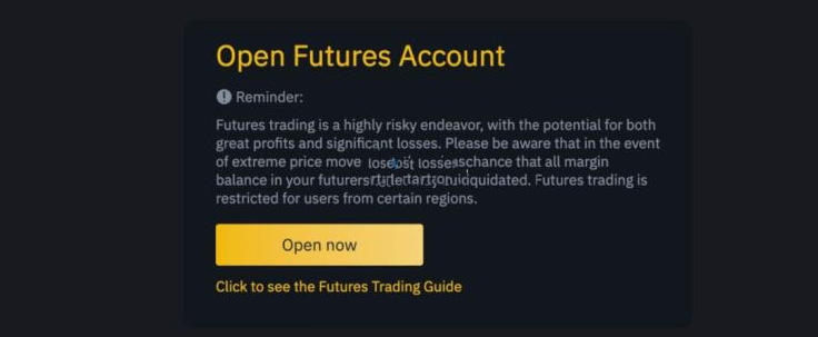 2、点击【立即开户】按钮,激活币安合约账户。您现在可以在币安交易合约产品了。请注意,您仍应该做好准备以及自我教育,直到可以负责任地使用产品。